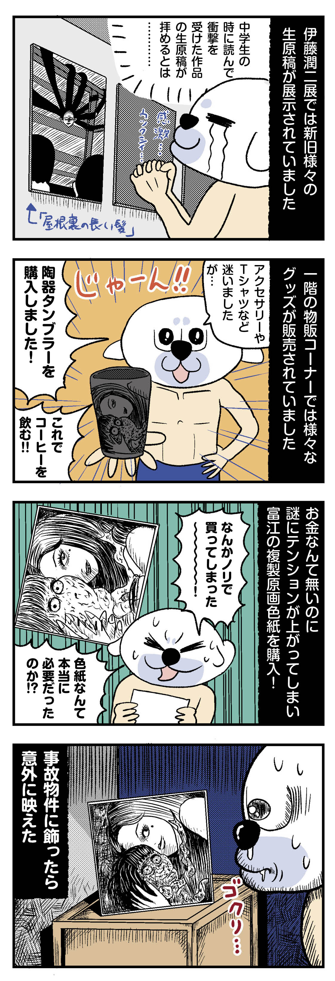 事故物件にホラー画色紙を飾ってみた 2024年07月24日 17:31 前回の記事のちょっとした続きの話です。どう…だろう?購入したタンブラーや、「屋根裏の長い髪」の原画写真は、前回の記事に載っております。(間違えて前回の記事にアップしてしまった!)前回の話はこちら↓最初から読む?↓仕事から帰ってきて、あ〜疲れた〜今日はもう寝ようかな〜とサボろうとすると、富江にギロリと睨まれるようになりました。まあ、寝ますけど。ブログランキングもよろしくおねがいしっす! 日記・雑談ランキング ブログの読者登録してもらえると嬉しいです。更新していない日はXでつぶやくこともありけり。 「日常」カテゴリの最新記事 < 前の記事次の記事 > コメント コメントフォーム 名前 コメント 記事の評価 リセット リセット 顔 星 情報を記憶 コメントを投稿する
